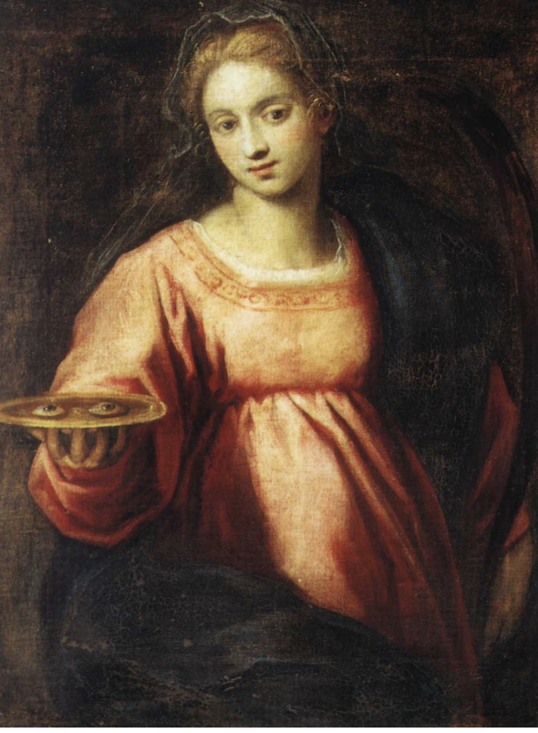 Sonunda annesinin baskılarına dayanamayan Lucia, kendi gözlerini oyarak delikanlıya gönderir. Efsaneye göre Tanrı, Hristiyan bir genç kız olarak Lucia’nın bu cesur fedakârlığından öylesine etkilenir ki, ona gözlerini yeniden bağışlar. Rönesans dönemine ait Santa Lucia tablolarında elinde taşıdığı, ya da bir tabağın içinde duran oyulmuş gözlerin nedeni bu anlatıdır…