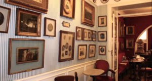 İçerisi kırmızı bir sığınak. Ahşap panellerin kokusu, antik mermer masaların ağırlığı, aynaların ardına gizlenmiş eski sohbetlerin yankısı… Burada zaman donuyor, yalnızca kültürün sesi duyuluyor. Çantamdan çıkardığım kitabı açıyorum. Fakat sayfaların arasından başka bir dünya beliriyor.