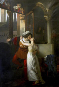 Her ne kadar tabloda 14. yüzyılın kıyafetleri ve mimarisi hâkim olsa da, resmin ruhu 19. yüzyıl romantizmine aittir. Walter Scott’un romanlarında, Dumas’nın kurgularında, Manzoni’nin kahramanlarında gördüğümüz romantik karakterler gibi…