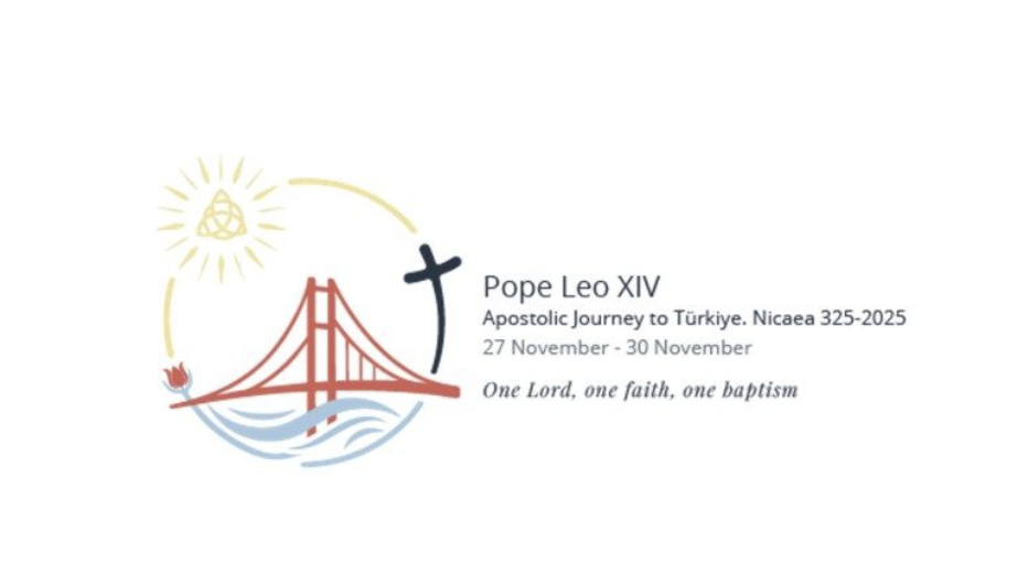 Papa’nın Türkiye ziyaretine özel hazırlanan logoda, Asya ve Avrupa’yı birbirine bağlayan Çanakkale Köprüsü merkezde yer alıyor. Köprü, Mesih’in Tanrı ile insanlık arasındaki birleştirici rolünü simgeliyor. Köprünün altındaki dalga motifleri hem vaftiz sularını hem de İznik Gölü’nü çağrıştırıyor. Sağda 2025 Jübile Haçı, sol üstte ise Kutsal Üçlü’yü temsil eden iç içe geçmiş halkalar bulunuyor. Aziz Pavlus’un Efesliler’e mektubundan alınan “Tek Rab, tek iman, tek vaftiz” (Efesliler 4:5) mottosu, bu görsel unsurlarla birlikte Doğu ile Batı, inanç ile tarih, insan ile Tanrı arasında kurulan köprüyü simgeliyor.