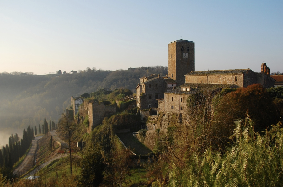 Tiber Vadisi’ne hakim bir tüf çıkıntısı üzerine kurulu ortaçağ köyü, adeta zamanın içinden süzülüp gelen taş yapıların, sürprizlerle dolu dar sokakların ve mazide saklı hikAyelerinbuluşma noktası. Köyün eteklerinde ise, antik çağlardan beri kutsal kabul edilen vadide gizemli bir su aynası uzanır: Vadimone (Vladimonio) Gölü. Plinius, bu gölü “yan yatmış, mükemmel bir şekilde düzgün bir çevreye sahip bir tekerlek… denizden daha soluk, daha yeşil ve daha yoğun renkte” sözleriyle betimler. Kükürtlü kaynaklarca beslenen göl, bataklık bitki örtüsü arasında oluşan “yüzen adalar”ıyla antik Latin yazarlarına esin kaynağı olmuştur.