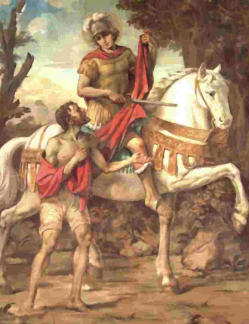 Efsaneye göre, Romalı bir subayın oğlu olan genç Martin, soğuk bir Şubat gecesi yünlü peleriniyle yürürken donmak üzere olan yoksul bir adam görür. Merhameti ağır basar, pelerinini çıkarır ve kılıcıyla ikiye bölerek yarısını adamın üzerine örter. O gece rüyasında Hz. İsa belirir; üzerinde Martin’in yarısı eksik pelerininin aynısı vardır. Bu rüya, onun hayatını değiştiren ilahi bir işaret olur.